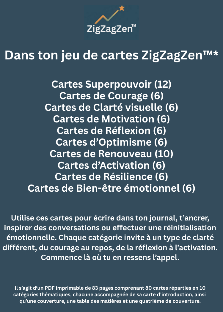 Cette version correspond au jeu de cartes ZigZagZen™ en PDF imprimable.
